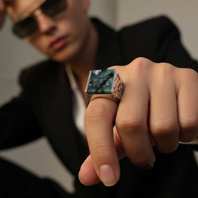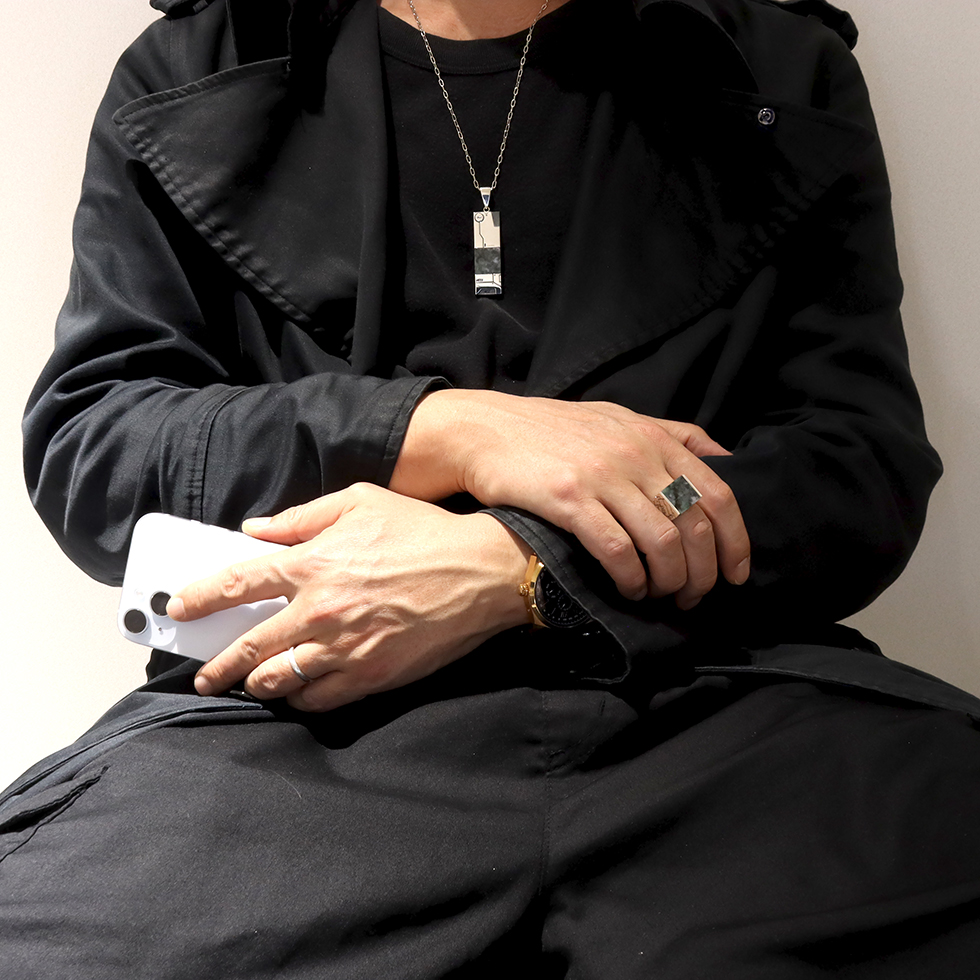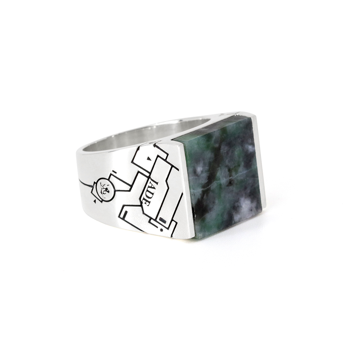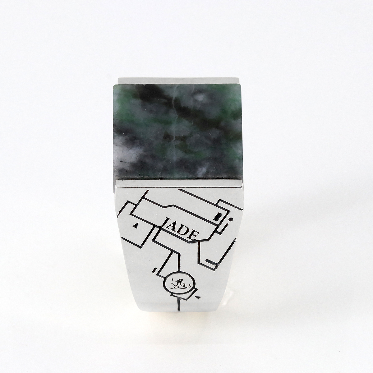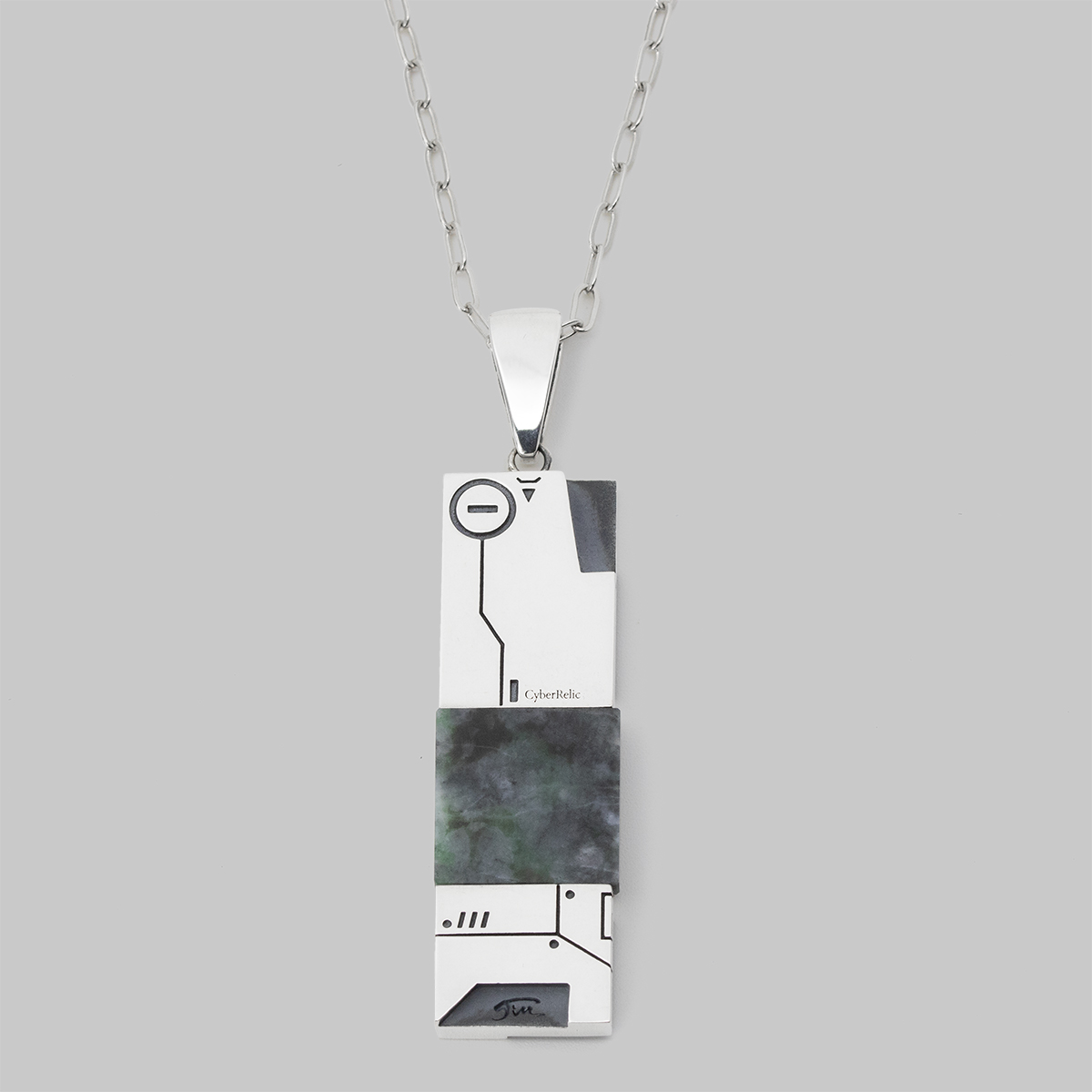 冷たい輝きを放つSLIVER925のボディには、回路を思わせる精密なラインが刻まれ、そこに流れるのは、人が手で刻んだ電子の詩。中央に嵌め込まれた翡翠(JADE)は、古代より”魂の護り石”として日本に伝わる聖なる鉱石。 -