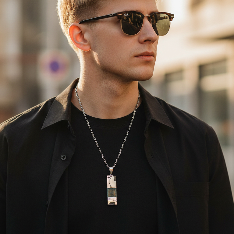 静寂の中に潜む、未来への記憶。このペンダントは、自然とテクノロジーの共存がテーマ。